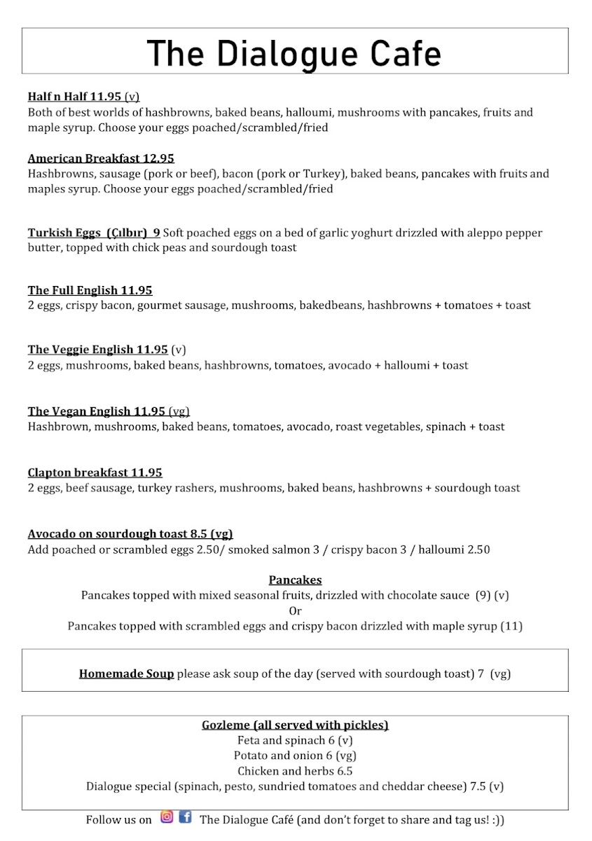 Welcome to The Dialogue Cafe, a charming eatery located on 130 Upper Clapton Rd, London. This cozy spot is perfect for anyone seeking a delightful breakfast, brunch, or lunch experience. With a menu that caters to various tastes and dietary preferences, it's no wonder patrons can't help but rave about their meals.